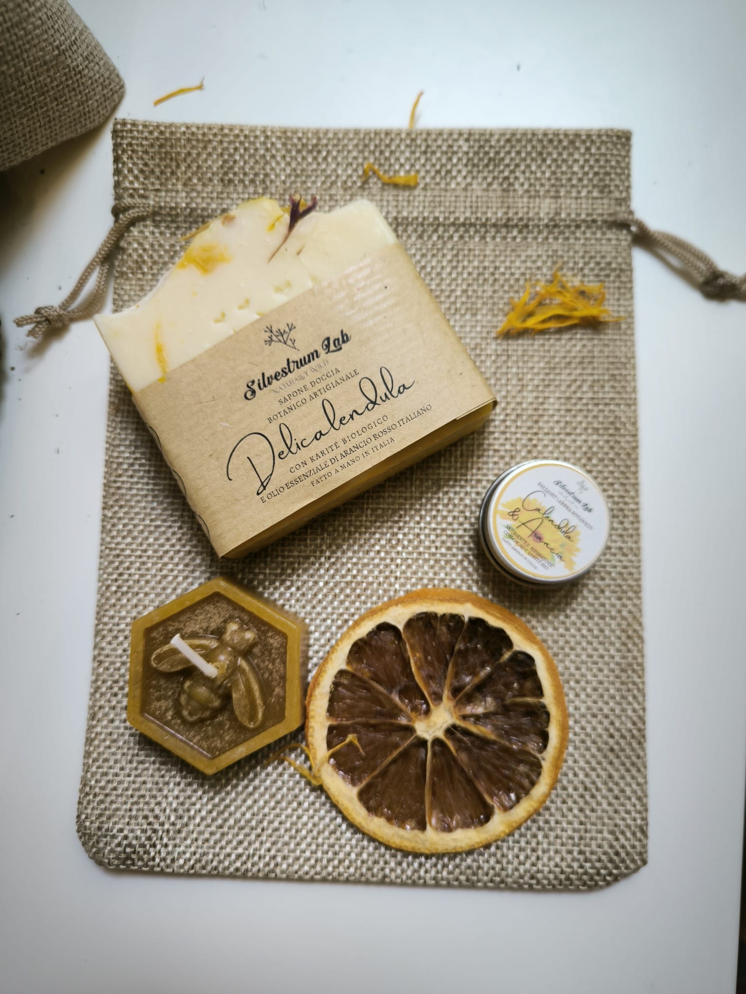 Te proponemos esta cajita regalo con nuestros productos naturales y artesanales, con ingredientes de comercio justo y sin plástico.